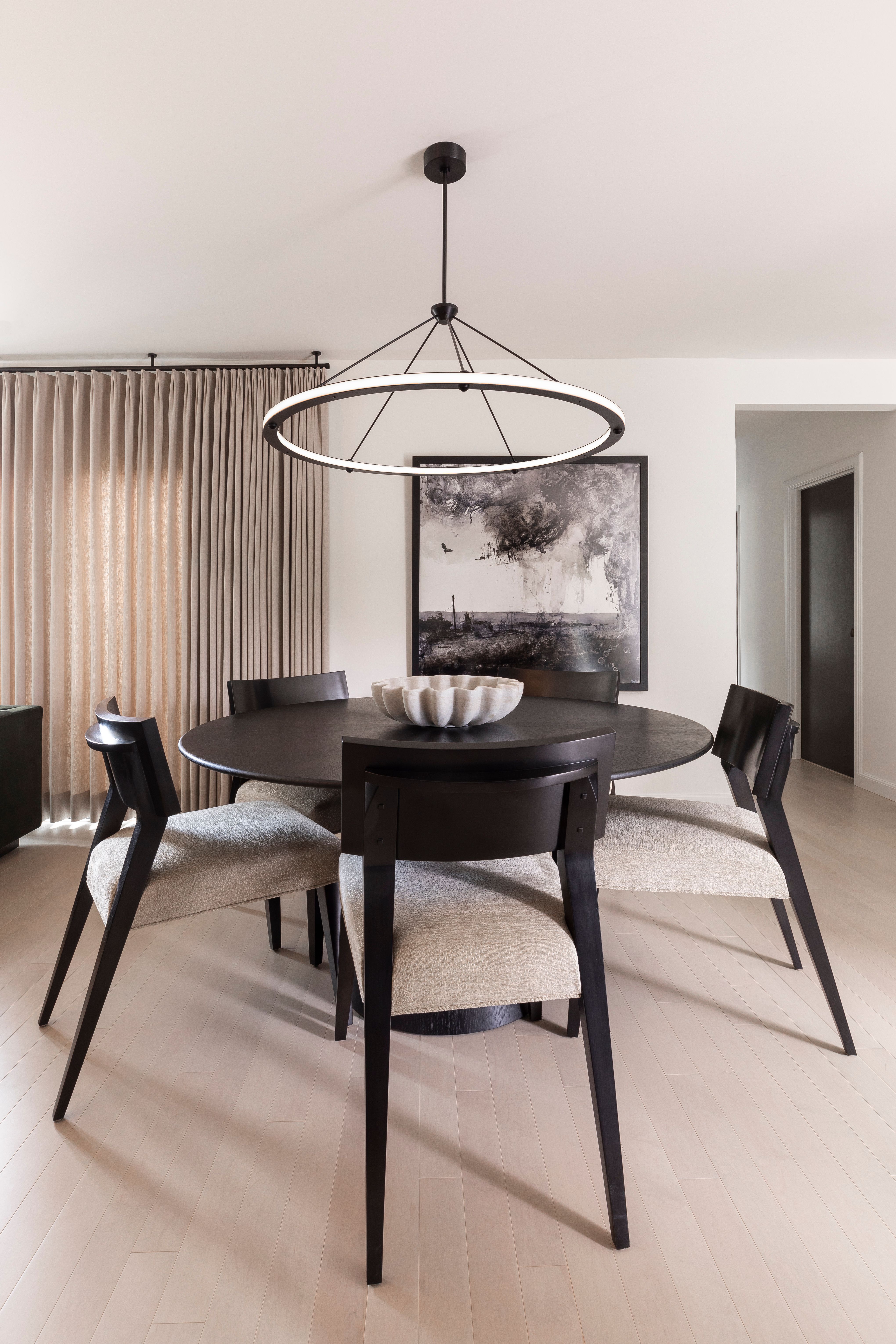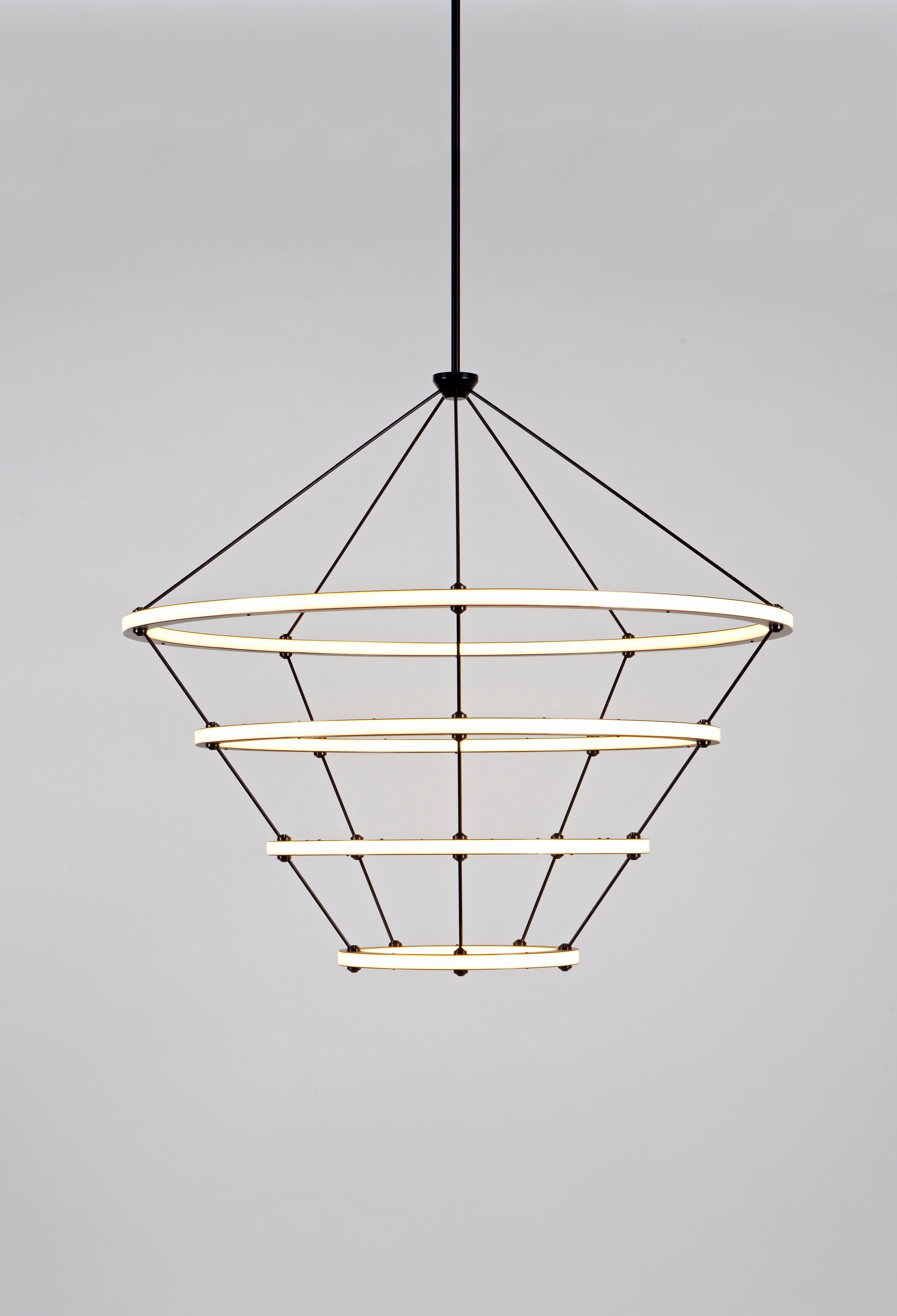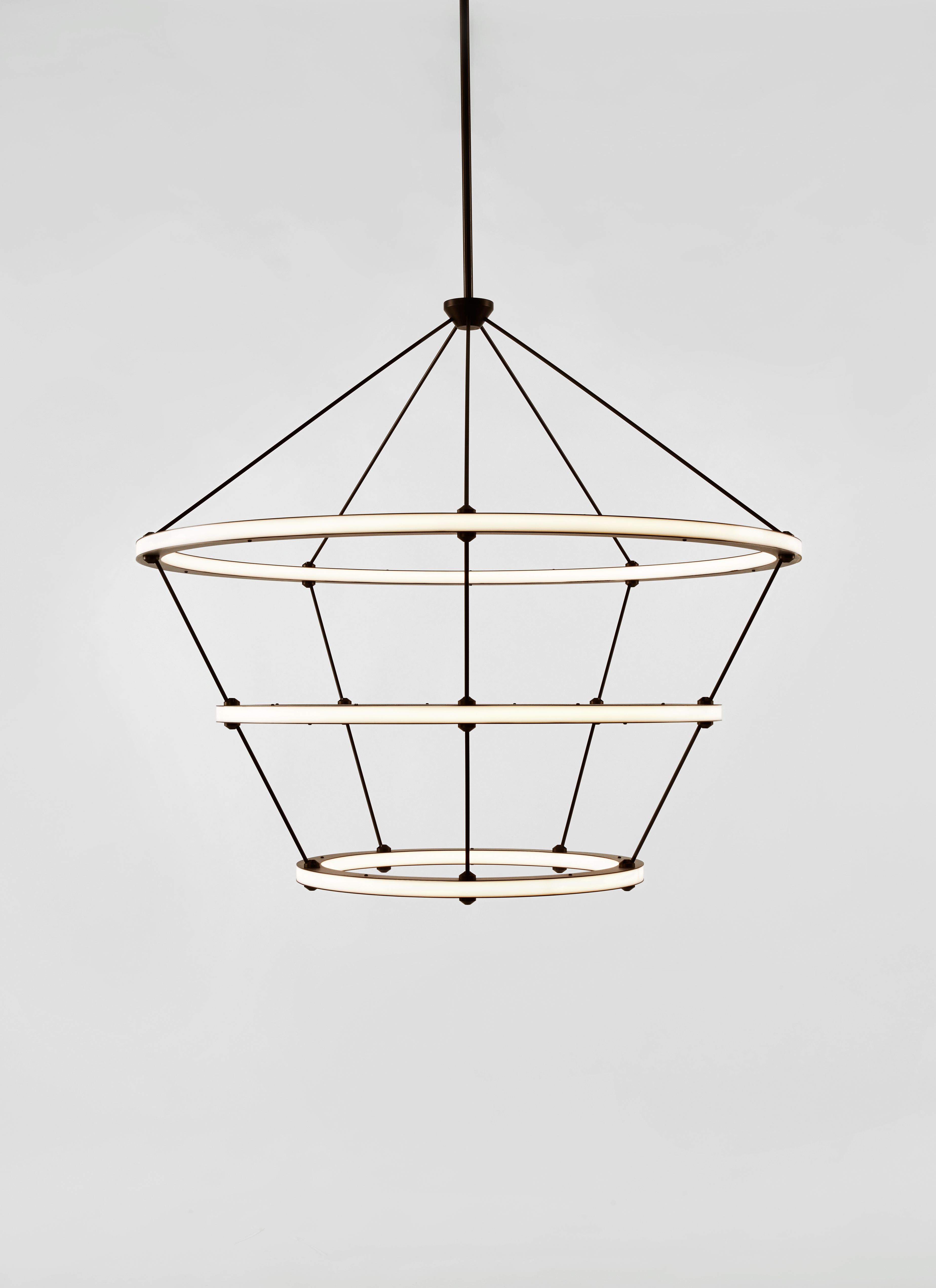 Halo is an LED lighting fixture with a minimal form. The concentrated intensity of the lighting allows for an elegant and reductive structure. The fixture is designed specifically to be suited to a variety of programs and scales including residential, hospitality, commercial, retail, and public. Available in a number of designs and finishes. Custom sizes, chandelier ring numbers, and orientations available upon request. Trade discounts available where applicable. Contact eva@loebachdesigns.com for more information. Designed by Paul Loebach for Roll & Hill.