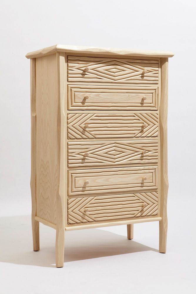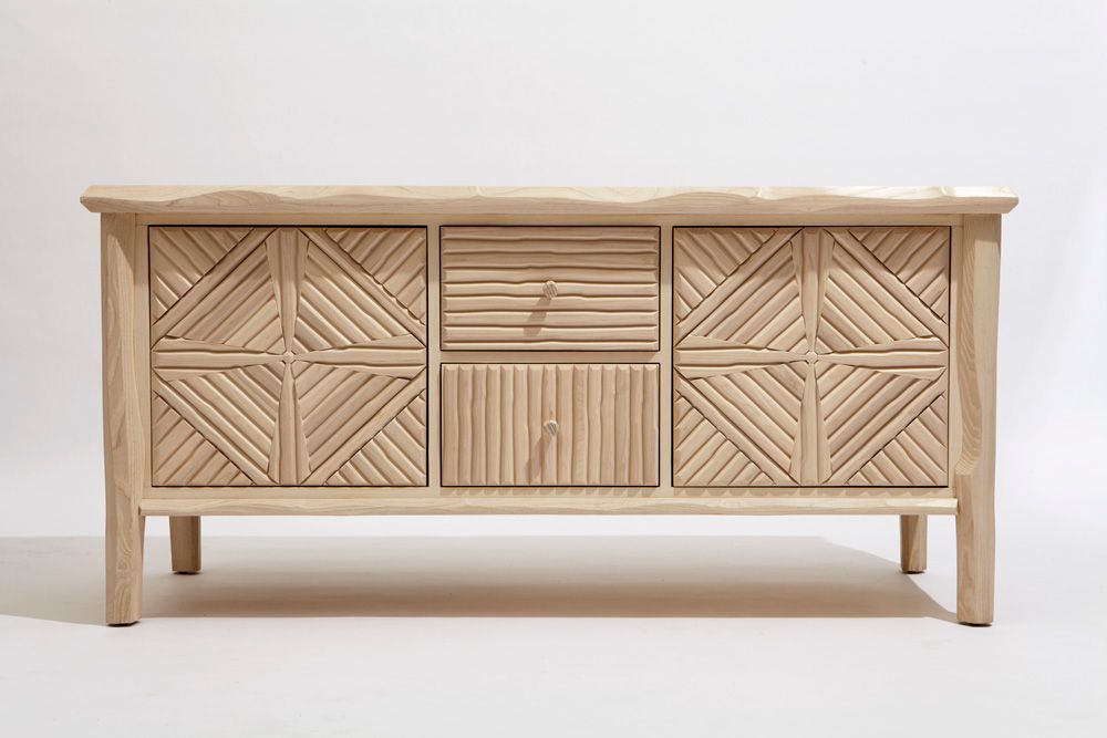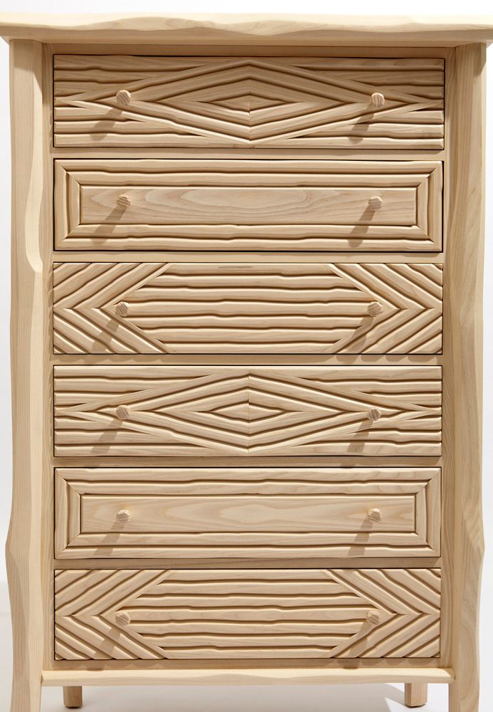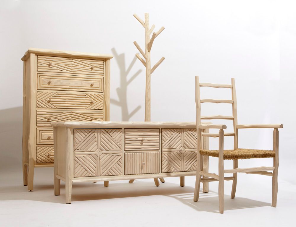The Great Camp collection draws inspiration from the untamed wilderness and domestic grandeur of the historic rustic furniture produced in upstate New York in the 1960s and 1970s. Produced in the USA, the collection makes unique use of 4-Axis CNC machining and innovative tool-pathing techniques, shaping dimensional wood blanks into irregular spindles and ‘stick-like’ shapes.